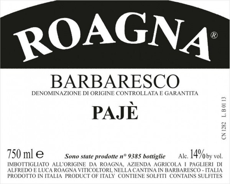 Luca Roagna's father was born in 1953, and that year also marks the first vintage this wine was produced by Luca's grandfather Alfredo, who was deeply convinced by the potential of this vineyard and went into deep financial debt after the war in order to purchase this land. The 2019 Barbaresco Pajè is muscular and firm with dark fruit and grippy tannins. There is a chalky quality that reflects the site's limestone soils. Delivering ample heft and dimension, this is a wine of substance. ~ (96) Monica Larner, Robert Parker's Wine Advocate 1-30-2025